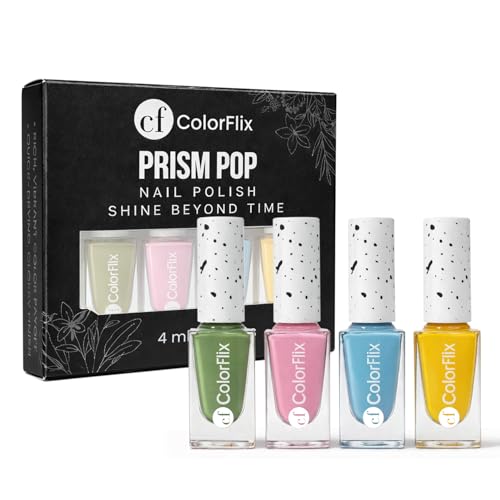 ColorFlix Prism Pop Nail Paint Pack of 4 – Long Stay, High Shine, Quick Dry, Glossy Shades- Color Splash 4ml Each