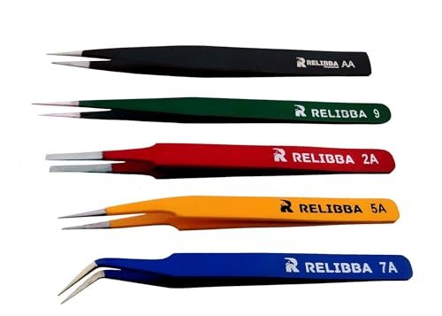 5 Pcs Tweezers Set for Electronics and Craft, ESD Multi-purpose Tweezer Anti-Static Professional Tweezers for Precision Repairing