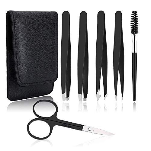 EASY TO USE:4 different tweezers, perfect for trim eyebrows, ingrown hair, facial hair, false eyelashes, double eyelid tape, menās beards and more. Eyebrow scissors and brush can trim and comb the eyebrows.
