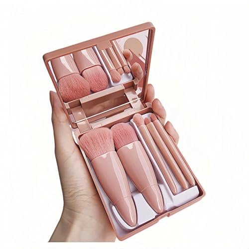 Elevate your makeup routine with this sophisticated 5-piece professional brush set, thoughtfully designed for precision application and portability. The set includes specialized brushes for every need: a luxurious long-handled kabuki brush for flawless foundation application, detail brush for precise work, nose shadow brush for contours, eye shadow brush for perfect blending, and a versatile dyeing brush. Each brush features ultra-soft, hypoallergenic vegan bristles that are gentle on sensitive skin, while the elegant rose gold and gray design adds a touch of luxury. The compact mirror case keeps your brushes organized and protected, making it perfect for travel or everyday use. No more dealing with messy brush storage or uncomfortable application – this set solves common makeup brush frustrations with its professional-grade quality and smart design. Ideal as a gift or personal indulgence, this complete kit helps create exquisite makeup looks with ease.