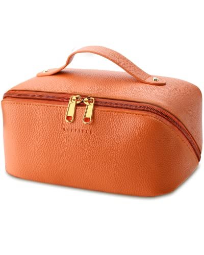 š LAYERED DESIGN: BATFIELD cosmetic bag features 4 compartments, allowing you to keep your makeup tools organized. Unlike traditional single-compartment cosmetic bags, it has a layered design for easy categorization and storage. The large opening design provides a hassle-free packing and easy travel experience, avoiding any cluttered mess.