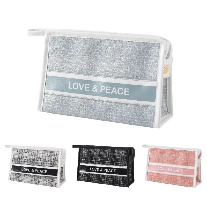 This cosmetic bag is not easy to fray, and can serve you a long time. Easy to carry, and you can take it anywhere. This cosmetic bag has an enough space for you to storage your makeup and other cosmetic accessories such as mirror, comb, lipstick, skin care lotion, etc.