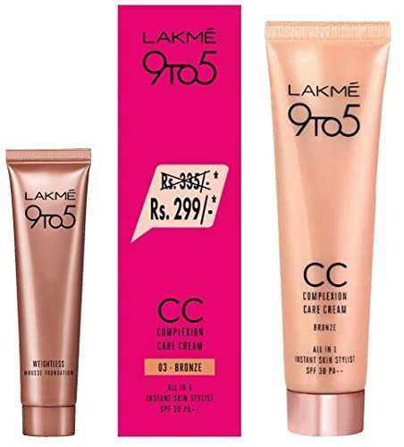Lakme 9 to 5 CC Cream, 03 – Bronze, Light Face Makeup with Natural Coverage, SPF 30 – Tinted Moisturizer to Brighten Skin, Conceal Dark Spots, 30 g