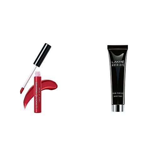 Lakme Forever Matte Liquid Lip Colour, Red Carpet, 5.6 mlIntroducing the new lakme forever matte lip color range – available in 20 exciting shades designed by experts, this lip color has an intense matte payoff that lasts long and looks freshly applied for up to 16 hrs. These deeply pigmented shades provide your lips with long lasting colors that just don’t budge whilst the color payoff is intense the texture is lightweight and very comfortable on the lips easy to apply, it glides on effortlessly and stays forever fresh try the liquid mattes in 20 vibrant shades and get bold lips that look freshly applied through the day it comes with a specially designed wand to make the application precise and effortless and give you the best payoff possible how to use: 1. Start by defining your cupid’s bow to get perfectly designed lips. Then, move to the outer edges and get an intense look in one swipe. 2. Get the intense matte payoff that looks fresh for up to 16 hours we recommend that you try some of our exciting shades: Red velvet, crimson rode, coral candy, nude dream, pink peach, pink glam, nude pink, purple pout, wine touch enjoy the new lakme forever matte lip color range.Lakme Absolute Blur Perfect Makeup Primer, Peach, 10 gLakme is India’s No.1 color cosmetics brand offering a wide range of high-end, world-class color cosmetics and skincare products. Lakme has a vast product range specially crafted by experts for the Indian skin. The brand has also been redefining fashion in India for over 15 years with Lakme Fashion Week, India’s premier fashion event. The Lakme Absolute Blur Perfect Makeup Primer is the perfect start for a flawless, professional makeup finish. The Lakme Absolute Blur Perfect Makeup Primer’s silky blur formula instantly brightens primes, softens blemishes and pores and creates a smooth skin surface to prep for makeup application. Makeup glides on effortlessly and blends seamlessly for a more vibrant, color true finish. The Lakme Absolute Blur Perfect Makeup Primer is the perfect canvas for makeup or wear-alone over your moisturiser for instant smoothness and radiance. Buy Now! The Lakme Absolute Make-Up Primer is a flawless make-up primer that preps your skin for professional make-up. Creates the perfect base for make-up and helps it stay for longer. Hides skin imperfections and gives you an even toned skin. It is lightweight, water-proof, and has a smooth matte texture. Pro Tip For an even application and finish moisturize your skin with Lakme Peach Milk Moisturiser before applying the Primer.