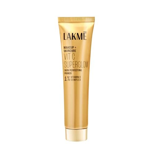 Ever used makeup thatās good for your skin? Let us loop you in. Introducing new Lakme Vit C Superglow Skin Perfecting Primer with 1% Vitamin C Complex, your new beauty must-have to prep, protect and perfect your base. Infused with the goodness of 96% skincare ingredients like brightening Vitamin C and antioxidant Vitamin E, it gives glowing, even tone, hydrated skin. This blurring elixir also has skin smoothening emollients that minimize pores and imperfections for a smooth, makeup ready base. Its airlight formula seamlessly glides onto skin, leaving it feeling hydrated, velvety-smooth, and glam-ready. Backed by the power of skincare science, the elastomer gels in this primer cling together to form an ultra smooth veil that holds makeup in place ensuring makeup looks better and lasts longer. As you apply this primer, its protective film formers provide a barrier that shields your skin from skin damaging agents. Moreover, it absorbs excess oil and mattifies for a flawless and fresh matte finish. Embrace luxury in every swipe and experience the transformative power of skincare first makeup. With an indulgent texture and a 2-in-1 makeup+skincare formula that performs effortlessly, Lakme Vit C Skin Perfecting Primer is the epitome of natural, radiant glam.