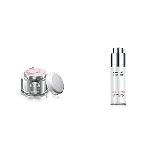 Lakme Absolute Perfect Radiance Skin lightening/Brightening Day Creme 50 gp>Inspired by the illuminate trend, Lakme ’s Perfect Radiance range is now elevated to a new level of luxury and efficacy. The high-resolution clarity of a crystal is now captured in the New Lakme Absolute Perfect Radiance range. How to use: Take a dollop of the cream on to the palm. – Dot the forehead, cheeks, nose, and chin. – Using fingers, gently massage the cream in an upward and outward direction in a spiral motion. If you wish for skin that has a flawless and illuminating glow, then this Lakme Absolute Perfect Radiance Skin Lightening Day Crème is formulated just for you. This Skin Lightening Day crème with precious micro-crystals and skin lightening vitamins gives you a fair, illuminated look. Moisture rich yet so ultra light this crème melts into your skin with a silky feel. This formulation gently polishes your skin to reveal that illuminated look. This Day Crème replenishes and moisturizes your skin giving it an instant fairer glow. Its advanced skin lightening formula is infused with vitamins, to give you a radiant, flawless skin. Its smooth, rich texture suits all skin types and is perfect to add to your cosmetic kit. Its sunscreens with SPF 30 protect your skin from sun damage. Along with luminous, glowing skin, the day cream gives you an even skin surface. It prevents dark spots, blemishes and breakouts giving you the perfect, radiant look. Look younger and glow every day with the Lakme Perfect Radiance Fairness Day Creme- buy it now!Lakme Perfect Radiance Intense Whitening Day Creme addresses the need of having a smooth and radiant skin for men and women. It does this by treating most common skin problems like dark spots, acne, blemishes, excessive tanning, oiliness, and dullness. This cream is ideal for occasional as well as daily use. Consistent use of this cream will rid you of most skin problems, leaving clean, fair, soft, and smooth skin behind. This cream penetrates into deep skin layers treating your skin at the roots. It controls any excess formation of melanin that causes skin darkness. It also contains skin lightening vitamins to enrich your skin, and regular use will give you fairer skin. It is good for use on oily as well as dry skin, and it provides a moisturizing effect on your skin. The cream also leaves a floral fragrance on your skin. The titanium dioxide listed as one of its ingredients works as a sunscreen as well. The Lakme Perfect Radiance Intense Whitening Day Creme should not have contact with your eyes, and in case this happens your eyes need to be washed properly with cold water. This cream is only for external use. This product is a great option for an instant whitening effect and long-term fading of any spots on your skin. Product Features The cream comes in a 50g container. It is safe for all skin types, and suitable for men and women. It has titanium dioxide that works as sunscreen. It provides an instant whitening effect. It is safe for daily use.Lakme Absolute Perfect Radiance Skin lightening/Brightening Serum 30 mlInspired by the illuminate trend, Lakme ’s Perfect Radiance range is now elevated to a new level of luxury and efficacy. The high-resolution clarity of a crystal is now captured in the New Lakme Absolute Perfect Radiance range. Lakme Absolute Perfect Radiance Skin Lightening Serum is activated by two powerful ingredients – Vita-Resorcinol that diminishes the formation and transfer of skin darkening pigments and precious micro-crystals that are known to gently polish skin to reveal a fair, illuminated look. Enriched with skin lightening vitamins, this serum gives a salon like boost to your skin. Pamper your skin with the special care it deserves and feel confident as you stand out of the crowd with an illuminated and nourished look. The glow of this luxurious and efficacious skin lightening serum with micro-crystals gives you radiance and luminosity like never before. It’s unbelievably simple to get that runway inspired look with this light weight Serum that brightens your skin from the core. With few quick regimes, you can now strut with that illuminated crystal like radiance wherever you go and flaunt that fair, flawless and radiant skin. That’s reason enough to add the Lakme Absolute Perfect Radiance Whitening Serum to your summer skin regime, stat!