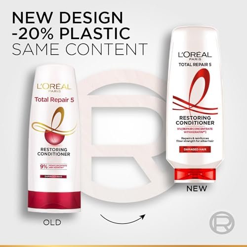 Revive your damaged hair today! L’OrĆ©al Paris Total Repair 5 conditioner helps fight against the five visible signs of damaged hair: stiff, strawlike, split ends, dehydrated, and brittle hair. The Keratin XS conditioning formula reinforces each hair fibre to give strength and resilience to wear and tear; restoring smoothness and leaving it soft and healthy looking once again. Give new life to your locks with the Total Repair 5 range: Shampoo, for a deep clean; Conditioner, to restore moisture; and Serum, to nourish and protect! All you need for damage-free, beautiful hair!
