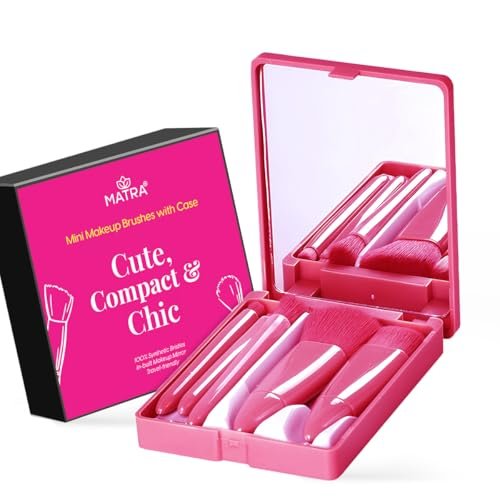 This mini makeup brush set with a mirror case is the ultimate makeup essential! With 5 mini brushes and a hand mirror in one sleek, chic case that fits perfectly in your purse, pocket, or palm, it is all about fashion X function! Whether you need a quick touch-up before an important meeting or a first date, you’ll always have this makeup brush kit handy. Each mini makeup brush is small but delivers professional results with soft, high-quality bristles. With the easy open-and-shut mirror makeup case, get a quick look to make sure everything is spot-on! Itās practical, portable, and oh-so-pretty ā making it the perfect gift idea for makeup lovers!