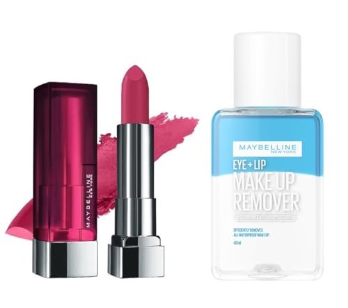 Elevate your makeup routine with this perfect pairing from Maybelline New York. This set includes the Color Sensational Creamy Matte Lipstick in shades, a rich, warm brown that offers a sophisticated matte finish and complements any skin tone. Its creamy formula ensures long-lasting color that glides on smoothly for a flawless look. To make your beauty regimen even easier, this set comes with a 40ml bottle of Maybelline New York Makeup Remover. This gentle yet effective remover effortlessly wipes away lipstick and other makeup, leaving your skin clean and refreshed without irritation.