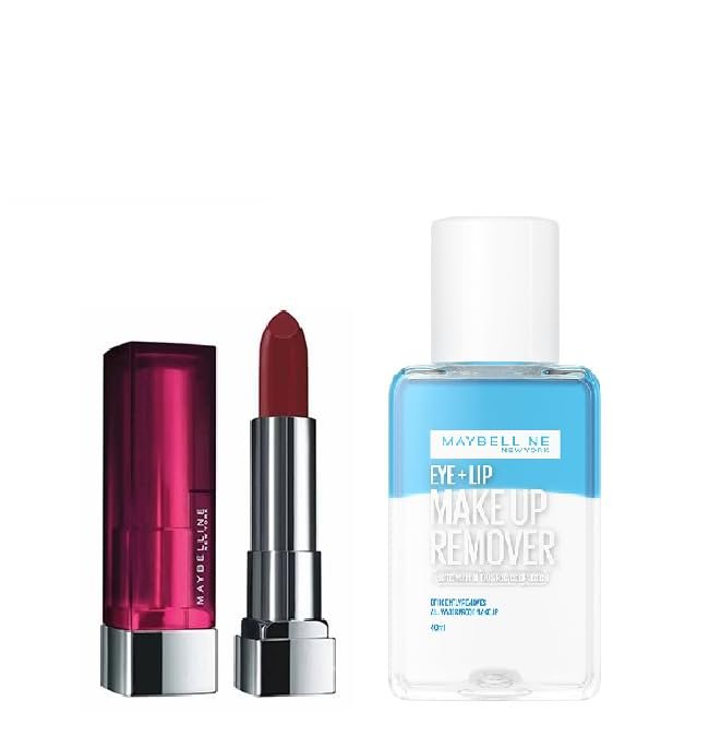 Elevate your makeup routine with this perfect pairing from Maybelline New York. This set includes the Color Sensational Creamy Matte Lipstick in shades, a rich, warm brown that offers a sophisticated matte finish and complements any skin tone. Its creamy formula ensures long-lasting color that glides on smoothly for a flawless look. To make your beauty regimen even easier, this set comes with a 40ml bottle of Maybelline New York Makeup Remover. This gentle yet effective remover effortlessly wipes away lipstick and other makeup, leaving your skin clean and refreshed without irritation.