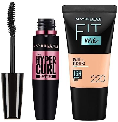 Maybelline New York Fit Me Matte+Poreless Liquid Foundation Tube, 220 Natural Beige, 18mlIn 16 unique shades and now in 4 tubes, MAYBELLINE FIT ME FOUNDATION – MATTE+PORELESS is made to fit diverse Indian skin tones. The Fit Me Foundation is for normal to oily skin and refines pores for a natural-looking matte finish. This Foundation is tested dermatologically, allergy tested and non- comedogenic.Maybelline New York Hypercurl Mascara Washable, Black, 9.2mlMaybelline New Yorkās Volum ‘Express Hypercurl Mascara gives curls eyelashes with a curl lock formula that lasts for up to 18 hours. The black mascara is available in washable and waterproof variants. Just one sweep of the Maybelline Mascara helps you get lashes that have spectacular volume and thickness. The Hypercurl formula in the Maybelline Volum’ Express Mascara works to achieve a dual effect – it instantly builds 3 times the volume in your lashes and helps curl them, giving you thick, curly lashes that look ultra-glam. HOW TO USE: Step 1. Start at the base of your lashes with the mascara brush and slowly drag it upwards in a zig-zag motion. Step 2. Do not let mascara dry in between coats. Use the wand to comb out any clumps on your lash tips. Step 3. At the end of the day, easily remove the Maybelline Hypercurl Mascara with Maybelline New Yorkās makeup removerFor beautifying your eyes, Maybelline has brought out their Hypercurl Mascara Washable in black colour. This mascara stays on the eyes for as long as eighteen hours, so one doesnāt have to worry about re-doing their makeup every few hours. Being washable, this mascara is soft on the eyelashes making sure there isnāt any loss of hair strands. It helps in keeping the eye lashes strong and intact, which can be a cause for concern with most mascaras. Mascara which are not gentle on eyes, cause a loss of hair strands, making the eyelash lose their density. Maybelline Hypercurl Mascara gives a satisfactory result in terms of creating density. Maybelline has been known for providing reliability and quality in their range of beauty products. For a thick and lengthy appearance of the eyelashes, this mascara works great. The wand of this mascara allows you to give your lashes a curling effect, and locks this curled look for a long time. It has got dense bristles to hold and roll-up the lashes well without easy breakage. This product is safe for your eyes, and is ophthalmologically tested too. The results make Maybelline Hypercurl Mascara Washable, Black a must for your cosmetic box. This mascara is available in a quantity of 23g, and gives a naturally long appearance to your eyelashes. Product Features The mascara weighs 23g, and can be used by women. It is deep black in color. It Is washable. The mascara is ophthalmologically tested, and safe for your eyes. It does not make your eyelashes fall.
