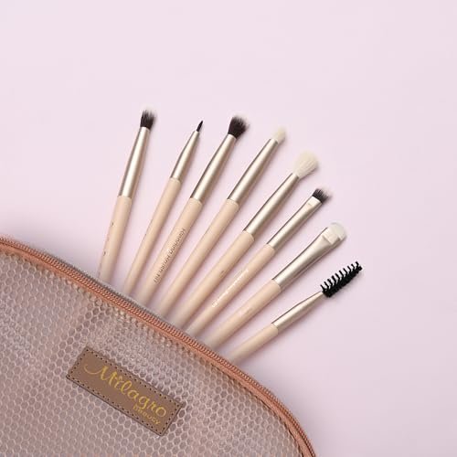 The Milagro Beauty Eye Essential Makeup Brush Set (Set of 8) is a curated collection designed to enhance your eye makeup application. Each brush is crafted with vegan fiber bristles, ensuring a cruelty-free and hypoallergenic experience. The ergonomic wooden handles provide a comfortable grip, allowing for precise application. The set includes a chic sparkle holder, adding a touch of elegance to your vanity.ā
