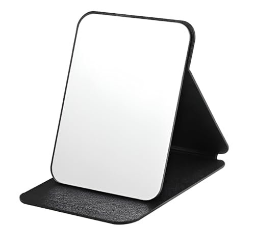 Ingenious Design: Adjustable stand allows you to find the perfect angle for makeup or use. Black PU leather wraps the portable makeup mirror, making it more durable and sturdy while also looking more elegant and unique.