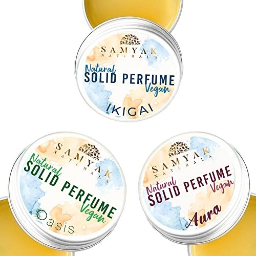 SAMYAK NATURALS – Natural Vegan Solid Perfume- pack of 3 – IKIGAI, OASIS, AURA