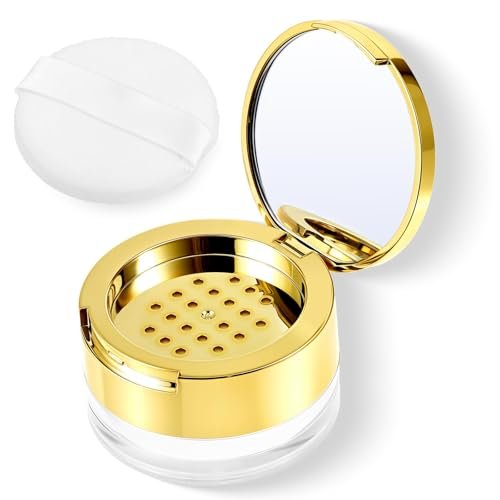 Elegant Powder Puff Box: The golden finish adds a stylish touch to your makeup collection; Makes a thoughtful gift for beauty enthusiasts; Enhances makeup organization and application experience