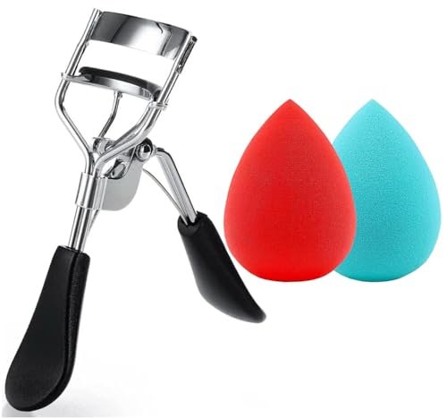 RIXTEC Premium Eye Lash Curler Parlor Eye Makeup Accessory Easily Roll Over Small Eyelashes | Professional Handle Curl Eye Lash Curler With 02 Pcs Makeup puff Set for Face Makeup | Makeup Sponges Set is suitable with Liquid & Creams | Sponge makeup is for all Skin Types (Multicolor)
