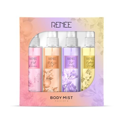 Pink Romance : Top Notes: Neroli, Bergamot, Red Fruits, Rose Middle Notes: Raspberry, Caramel, Lily of the Valley, Orchid Base Notes: Musk, Vanilla, Moss Get ready to tune into the floral melody of RENEE Pink Romance Body Mist. Crafted with heady notes of Bergamot, Caramel and Vanilla; this long-lasting mist will leave you smelling like a bouquet of flowers drenched in a delicious dessert. Violet Melody : Top Notes: Sicilian bergamot, Mandarin, Blackcurrant liqueur. Middle Notes: Rose de mai, Neroli, Egyptain jasmine, Freesia. Base Notes: Patchouli, Woods, Amber, Orcanox, Vanilla. Celebrate the party called life with RENEE Violet Melody Body Mist. Infused with the zesty notes of Blackcurrant, Rose & Neroli; this concoction of bold and romantic fragrance will let you own the dance floor, turn heads, and leave a lasting impression. Euphoric Musk : Top Notes: Caraway, Bitter Almond Middle Notes: Jasmine Sambac, Moss Base Notes: Jacarander Wood, Vanila, Musk Wrap yourself into the zen-like aura of RENEE Euphoria Musk Body Mist. With each spritz, you embark on a fragrant journey that transports you to a tranquil oasis, where combined notes of Jasmine, Moss & Musk serenade your senses. Bohemian Zest : Top Notes: Orange Blossom Middle Notes: Jasmine, patchouli Base Notes: Cedarwood, Rose Honey Indulge with the vibe of a free spirit with RENEE Bohemian Zest Body Mist. Created with an energizing play of Orange blossom, Honey & Patchouli, this mist is like dancing through a field of blooming flowers, surrounded by the sweetest nectar!