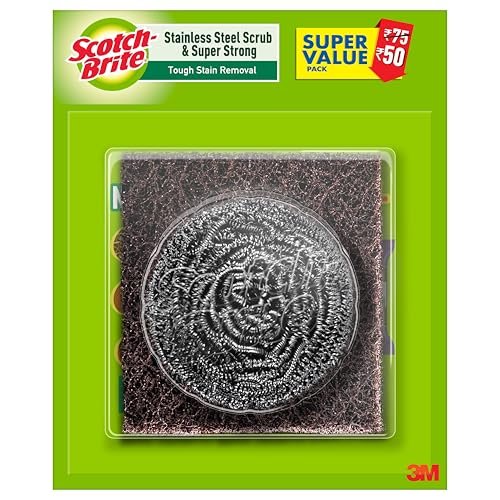 Scotch-Brite 1 Stainless Steel Scrubber (15g) and 1 Scrub pad Combo