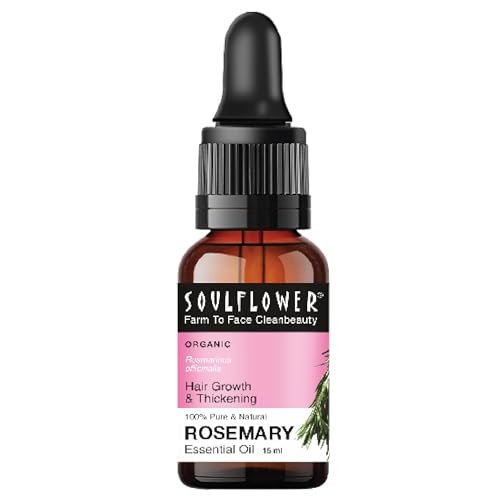 Soulflower Pure, Undiluted Rosemary Essential Oil is a steam-distilled, 100% natural essential oil derived from high-quality Rosemary leaves (Rosmarinus Officinalis). Free from preservatives, chemicals, alcohol, artificial colors, and fragrances, this versatile oil can be blended with a carrier oil for various self-care routines, including hair and skincare. Commonly used in scalp and skin care practices, it can be mixed with personal care products or added to a diffuser for a fresh, herbaceous aroma, creating a refreshing environment. Suitable for external use only, this essential oil should always be diluted with a carrier oil before application.
