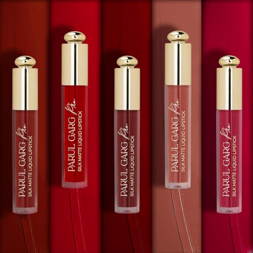 Parul Garg Beauty MUA’s Favourite Pack of 5 | Long Lasting Smudge Proof Silk Matte Liquid Lipstick Set | Bridal Lipstick for MUA Kit | Lightweight Vegan Liquid Lipstick (Bridal Must Have, 3 ml each)