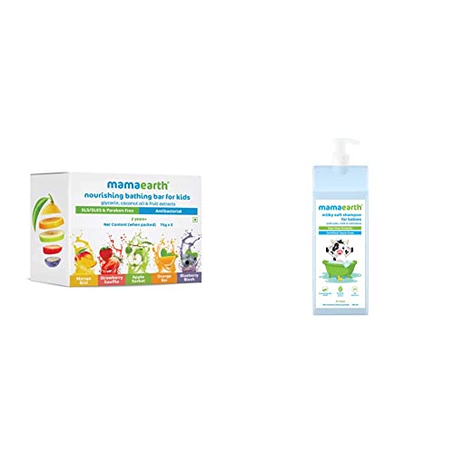 Mamaearth Fruit Based Nourishing Clear Bathing Bar Baby Soap With Glycerine, For Kids 75 Gram X 5 & Milky Soft Shampoo with Oats, Milk and Calendula for Babies – 400 ml ₹948.00 Original price was: ₹948.00.₹757.00Current price is: ₹757.00.