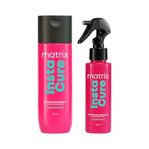 Matrix InstaCure Shampoo (200ml) & Porosity Spray (100ml) with liquid Protein for Damaged Hair| Ditch Damage from the 1st Use*| Reduced Split Ends, Breakage, Knotting | For All Hair Types