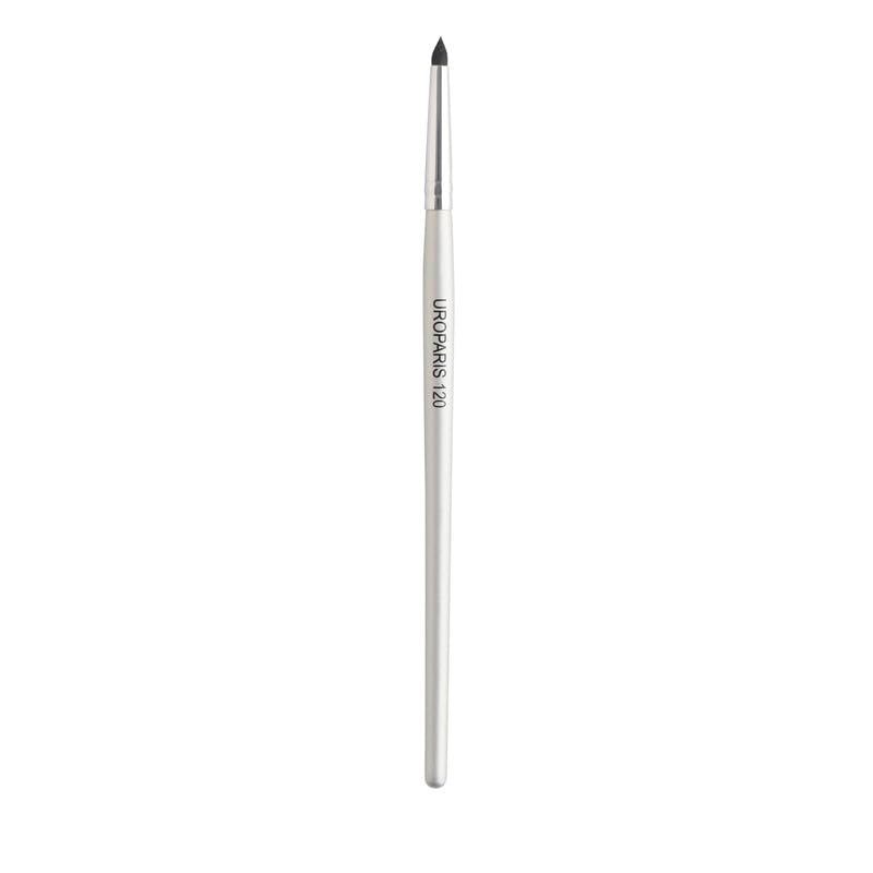 Achieve precise and depth-defining eye looks with the UROPARIS 120 Crease Depth Brush. This small brush with a pointed tip is perfect for adding depth in the crease, keeping dark shades in place while seamlessly blending them. Crafted with natural bristles, a wooden handle, and brass accents, this brush is a must-have for enhancing your eye makeup.