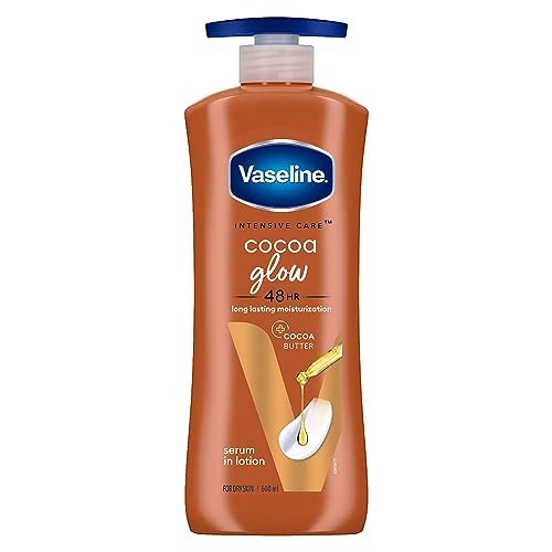 With daily exposure to environmental triggers, skinās natural moisture barrier can break down, allowing for water to escape the skin. The micro-droplets of Vaseline Jelly in our lotion for dry skin locks in moisture to allow the skinās natural barrier to recover. Glowing, healthy and smooth skin can be yours with Vaseline Cocoa Glow Serum In Lotion. Our rich formula combines 100% pure cocoa and shea butters, giving your skin a natural glow. Itās fast-absorbing formula moisturizes skin, leaving it feeling soft, without feeling greasy and oily.
