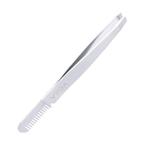 This new innovation from Vega is a dual-ended brow tool with slanted tweezers and a brow grooming comb. This ļ¬nest quality tweezer with hand ļ¬led slant tip and non-slip grip is aligned to grab unwanted hair with ease. The comb can be used after tweezing to perfectly groom brows into place.