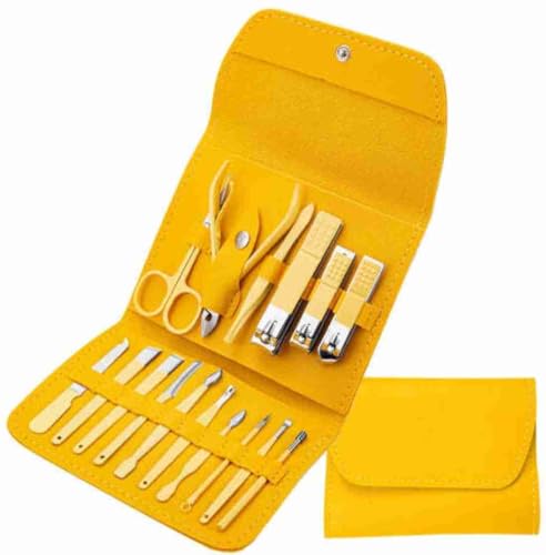 Taxila 16 in 1 Manicure Kit Stainless Steel Pedicure Kit Nail Care Tools Toenail Clippers with Luxury Leather Bag (Yellow)
