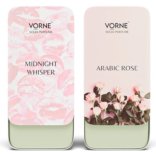 Soft elegance meets bold allure with the VORNE Womenās Solid Perfume Combo, featuring VORNE Midnight Whisper and VORNE Arabic Rose. Designed for women who want versatile, all-day sophistication, this combo is perfect for daily wear, date nights, evening events, or travel. Midnight Whisper opens with a gentle freshness, flowing into a graceful aromaticāfloral heart and settling into warm woody and amber tones, making it perfect for private moments, nightwear, or intimate evenings. Arabic Rose contrasts beautifully with velvety rose and saffron, a deep amberāoud heart, and a seductive muskāpatchouli base, ideal for parties, special occasions, or evening glam. This solid perfume set for women is compact, travel-friendly, and easy to carry, allowing you to switch or layer fragrances to match your mood, soft and graceful by day, confident and captivating by night. Make it a thoughtful gift for women, perfect for Valentineās Day, birthdays, anniversaries, festive gifting, or any special occasion. A stylish and practical womenās solid perfume combo set that fits effortlessly into everyday routines.”