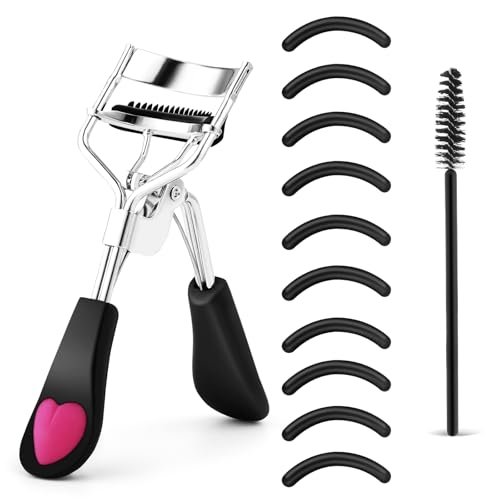Beauty Eyelash Curler Kit Professional Eye Lashes Curler Metal Makeup Tool with Built-in Comb Eye with 10 Replacement Refill Pads for Women Girl Get Dramatically Curled Eyelashes